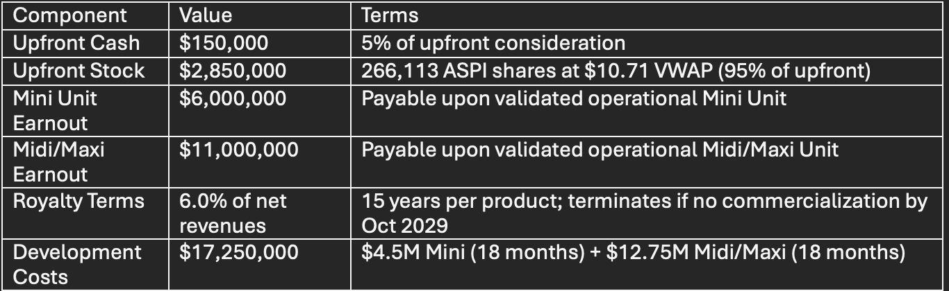 Position: The One30Seven acquisition represents a high-risk, high-reward strategic option within ASPI’s portfolio, not a core near-term value driver.