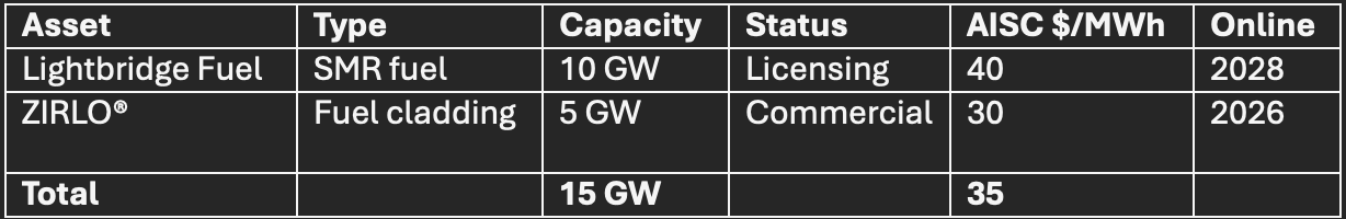 2025E licensing revenue: $5 M @ $50/MWh; 2026E $20 M @ $40/MWh.