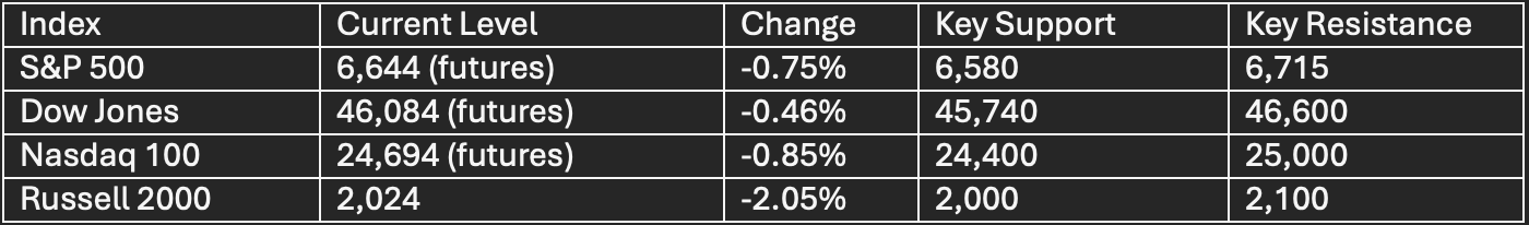 Market Outlook: Today’s session will be defined by the tension between solid earnings expectations and escalating trade concerns. Powell’s 12:20 PM speech represents the key risk event, with markets pricing in 25 basis points of cuts this month and December. Defensive positioning appears warranted given elevated geopolitical risks, though quality growth companies with strong fundamentals may offer resilient opportunities. The VIX decline suggests some normalization in fear levels, but traders should remain vigilant for renewed volatility as trade negotiations develop.