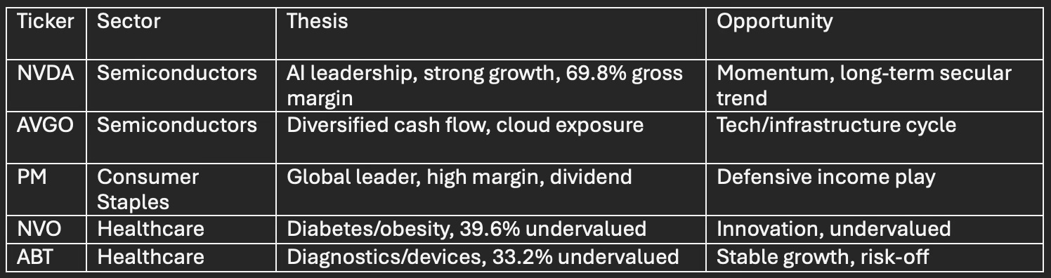 Recommendation: Maintain balanced exposure with overweight positions in semiconductors, healthcare innovation, and select consumer staples. Consider short-term hedging for elevated tech volatility and scale into defensive sectors ahead of anticipated Q4 seasonally strong cycle.