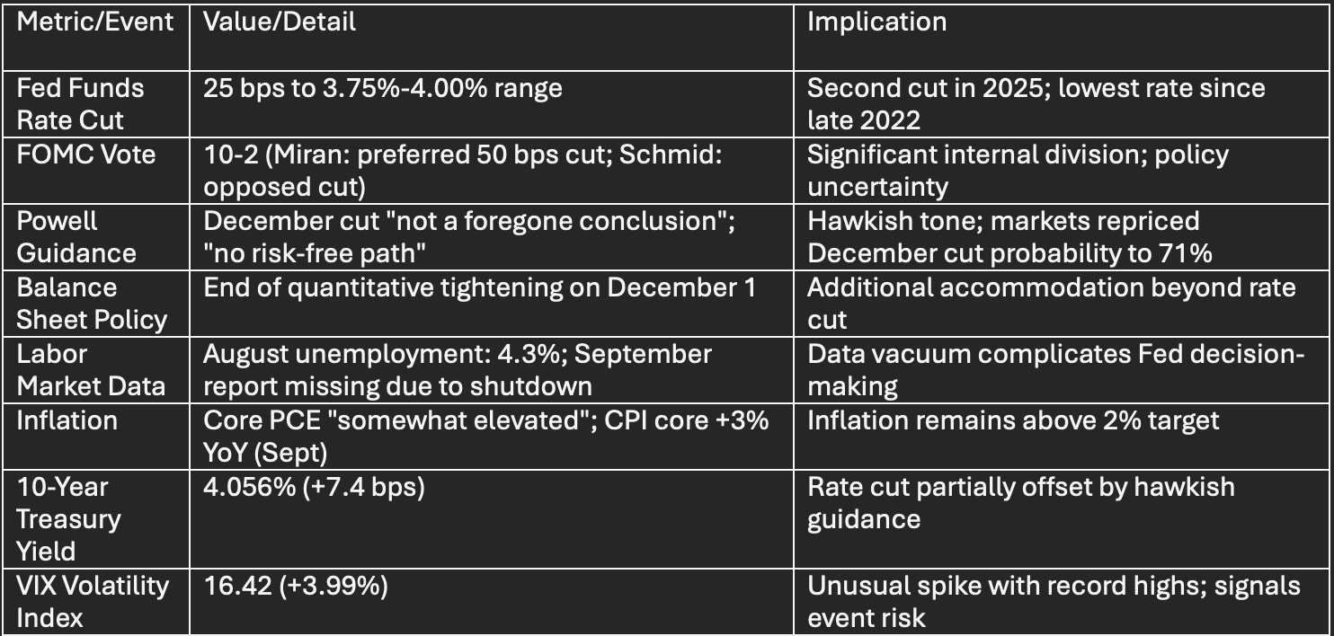 Fed Policy: December cut not guaranteed; prepare for slower easing cycle and higher terminal rate (3.50-3.75%).