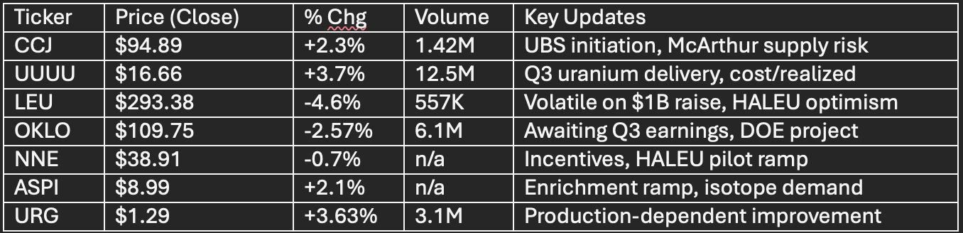Key Macro: Kazatomprom Q3 exports +33%; Cameco 2025 output seen -19%; SMR valuations under pressure