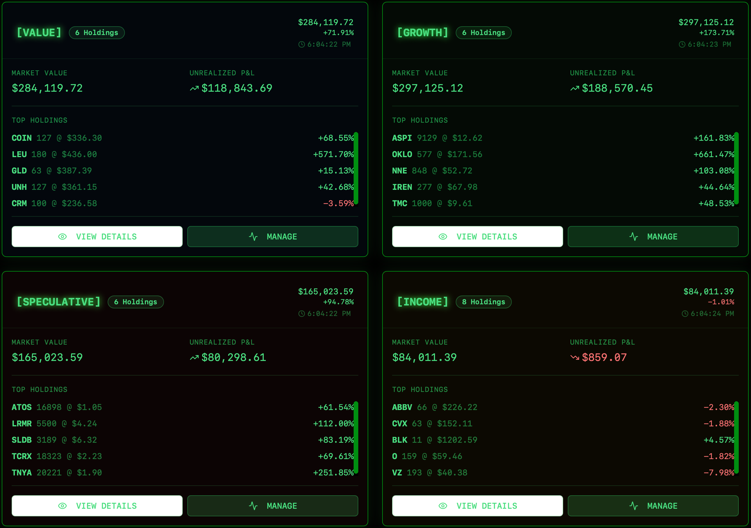 These model portfolios are powered 24/7 by our proprietary quant engines—ingesting 2,500+ securities, options-flow, satellite data, and macro now-casts.
