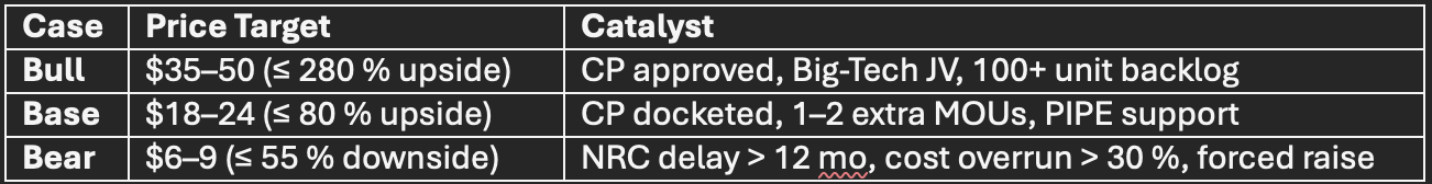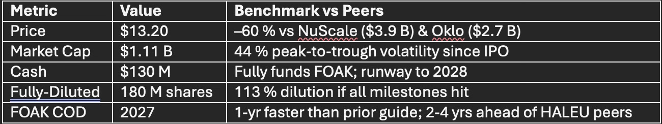 NKLR is a binary, asymmetric play: the only micro-reactor stock that combines immediate LEU supply, active NRC docket, and data-center demand pull. If FOAK hits 2027, valuation gap vs peers (> $3 B) closes fast; if not, equity is toast. High-conviction, high-beta slice for nuclear bulls betting on AI’s insatiable, 24/7, carbon-free power hunger.