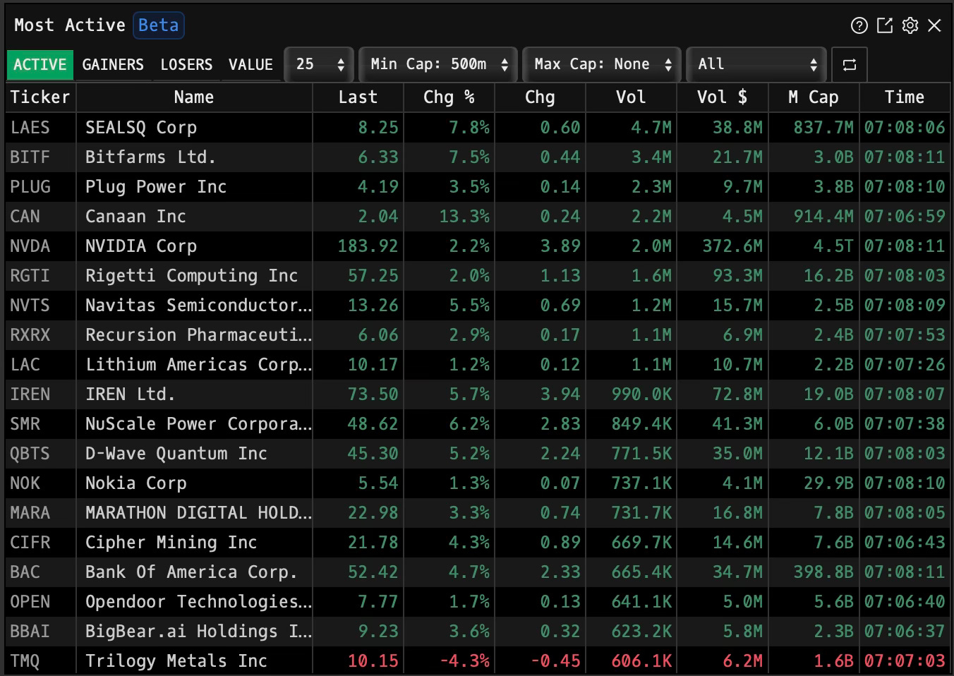 • QBTS 45.30 +5.2 % – sympathy; 47-c 11-Oct 1.00.